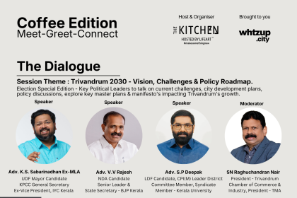 The Kitchen's Monthly Meet Over Coffee's First Thiruvananthapuram Edition is Co-hosted by Indrina Business Solutions (P) Ltd. Agenda: Vizhinjam Motherport & Strategic Business Opportunities for Thiruvananthapuram. Speaker: Elias John Timings: 5 pm-7 pm. All Participating delegates can claim to get a special upto 10% Discount for Real Estate & Life Insurance Support Services from Indrina Business Solutions Pvt Ltd. T&C Apply. For more details: Mr Jayamohan KS. Phone: 85470 18797 | Email: ksjayamohank@gmail.com | HighTea & Snacks are offered for all the delegates. Note: No venue tickets are available. Prior Booking is requested.